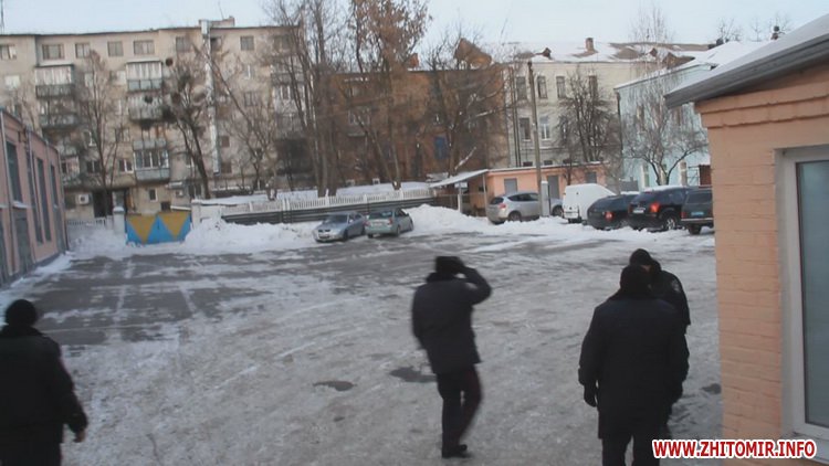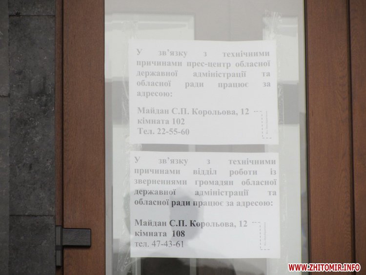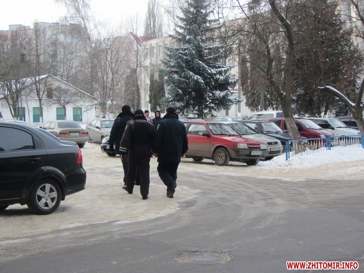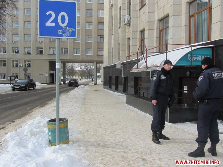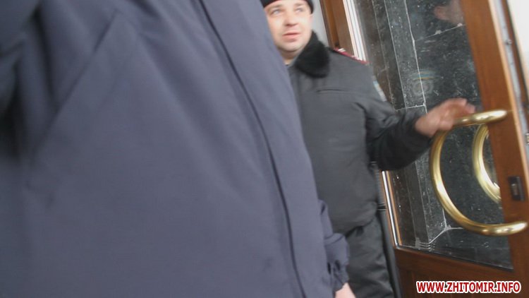 27 січня на всіх входах в Житомирську облдержадміністрацію стоїть по кілька міліціонерів. Через скло дверей можна побачити, що всередині є силовики, зокрема – представники «Грифону».
