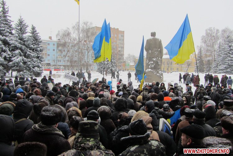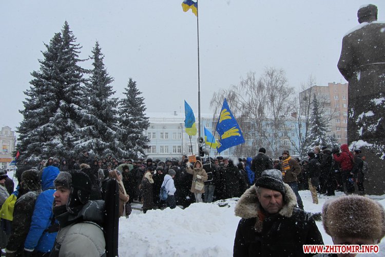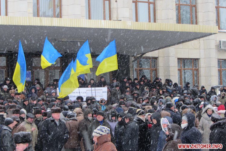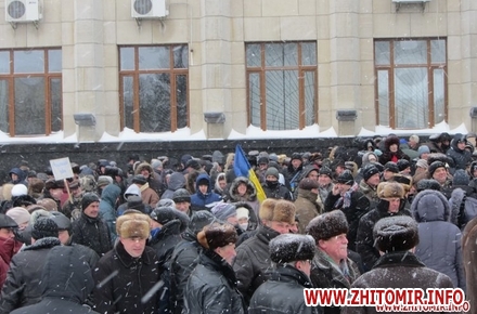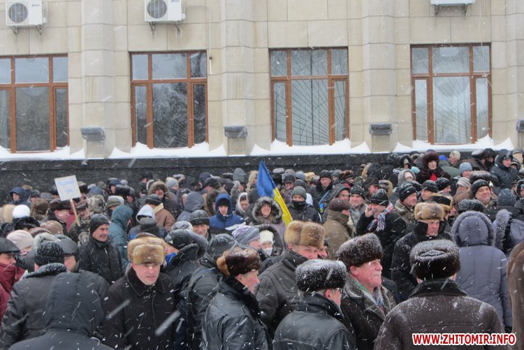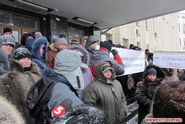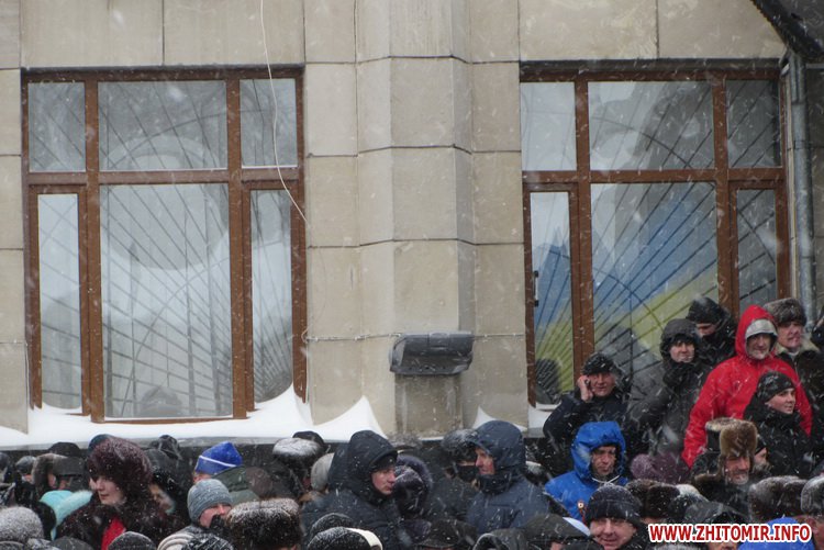 Как сообщал Житомир.info, утром 29 января на крыльце облгосадминистрации начали собираться люди на митинг в поддержку власти. Участники провластного митинга заблокировали вход в здание, на окнах которого за ночь появились решетки, и площадку перед крыльцом.