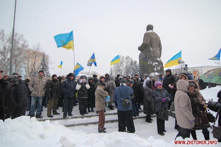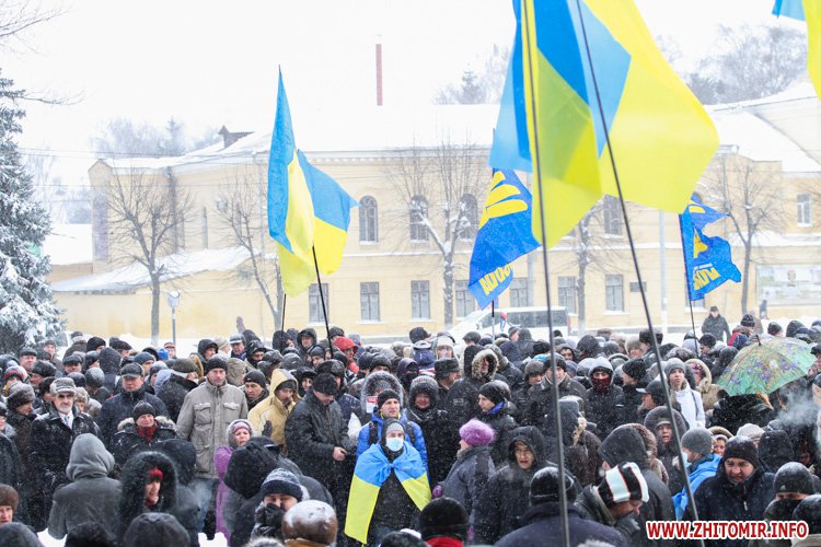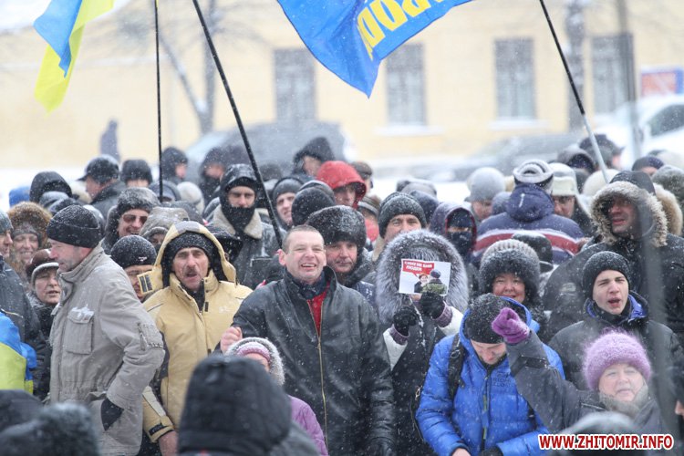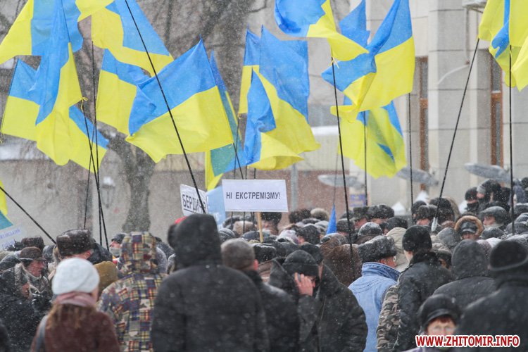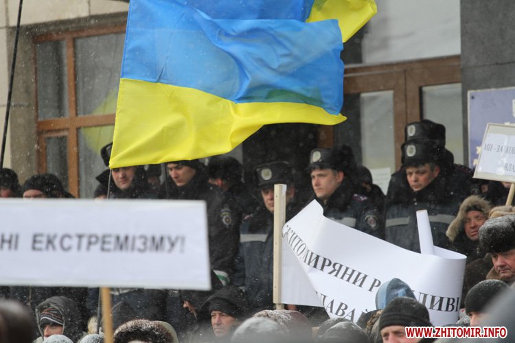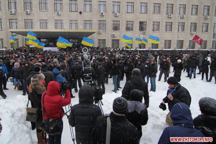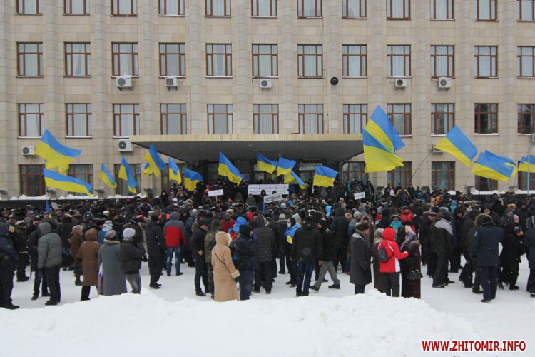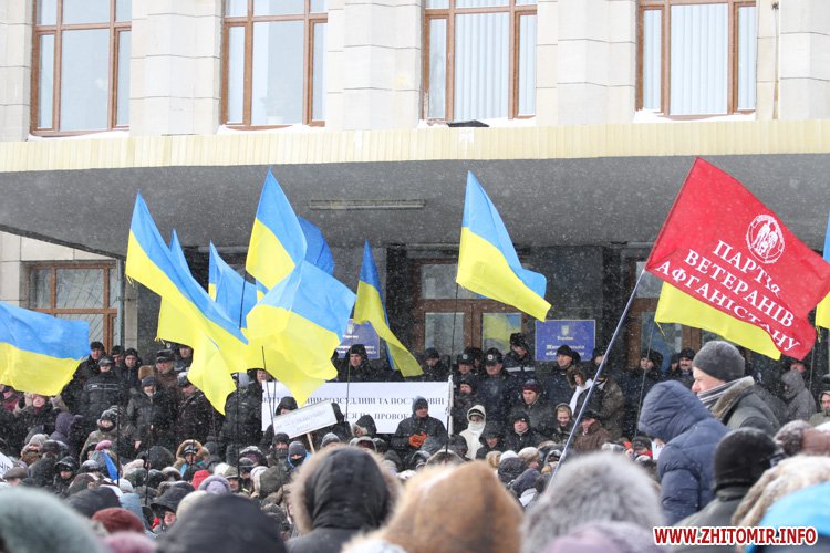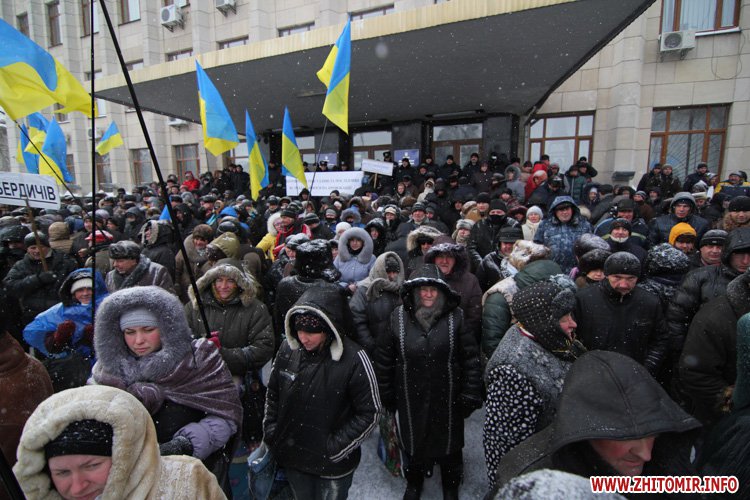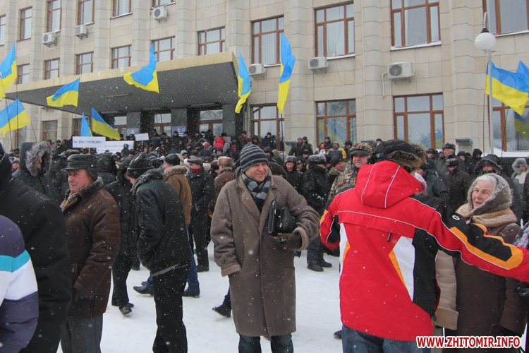 Утром 29 января возле Житомирской облгосадминистрации собрались защитники нынешней власти и ее противники.