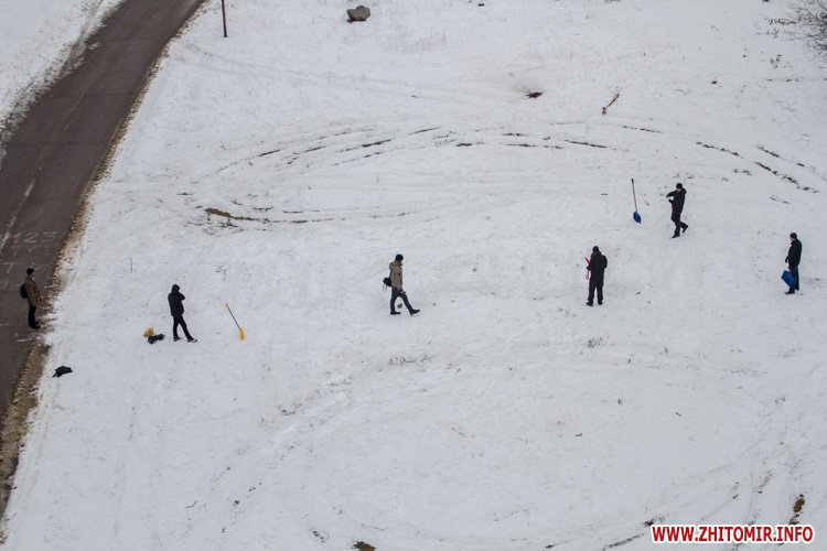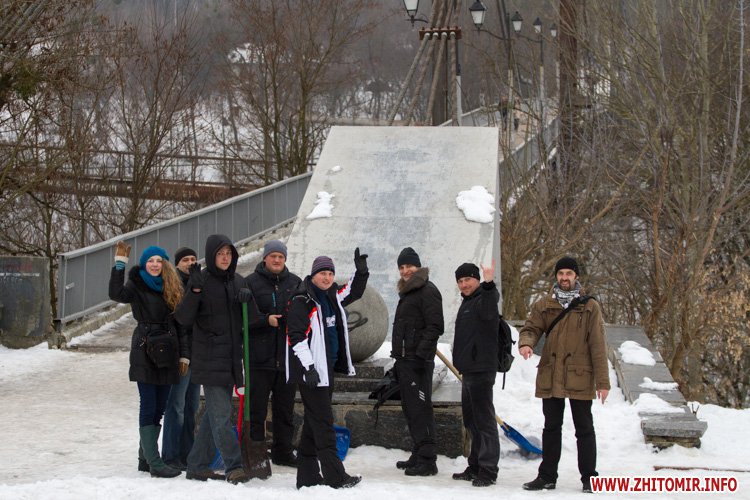 У суботу, 8 лютого, близько десятка житомирян вийшло на акцію «Вимога на снігу», організовану активістами мережі колективного захисту «СВОЇ». Організатори кажуть, акцію особливо не анонсували, розраховували на соцмережі та «сарафанне радіо». Втім, на заклик активістів відгукнулись громадські діячі міста, члени Національної спілки журналістів, працівники бюджетних установ, підприємці та студенти.