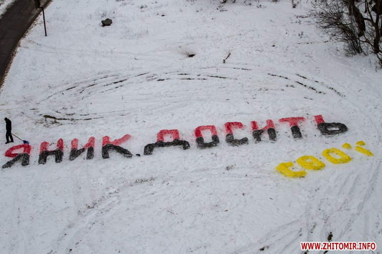 «Цей напис протримається, звичайно, лише до потепління. А як прийде відлига, то «Яник» розтане і зникне. Сподіваємось, що зникне не лише напис на снігу. Цю акцію ми провели для того, щоб привернути увагу житомирян та політиків, що основна вимога протесту українців на сьогоднішній день не зміна конституції чи зміна уряду, а амністія всіх політично репресованих, пошук та покарання винних у злочинах проти народу України. В такий стислий спосіб ми привернули увагу до людини, яка являє собою центр відповідальності за всі сьогоднішні події в Україні та може на них впливати», - говорить співорганізаторів флеш-мобу Дмитро Кропачов.