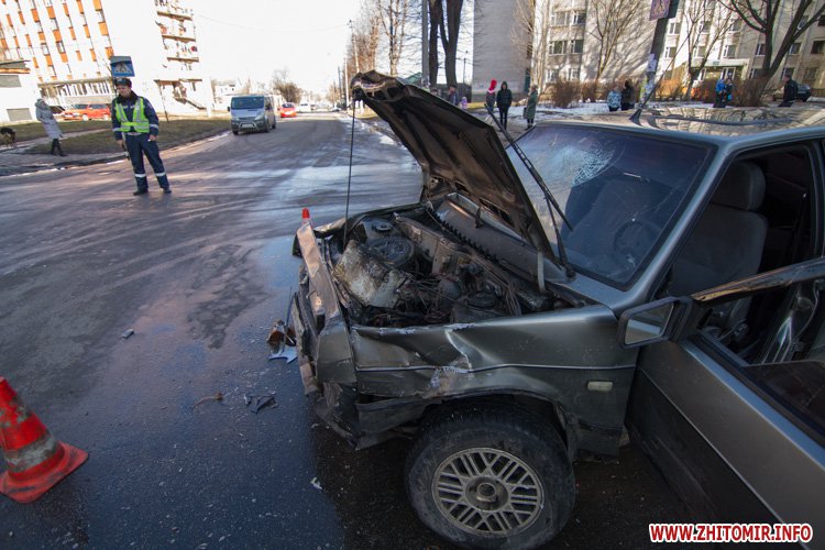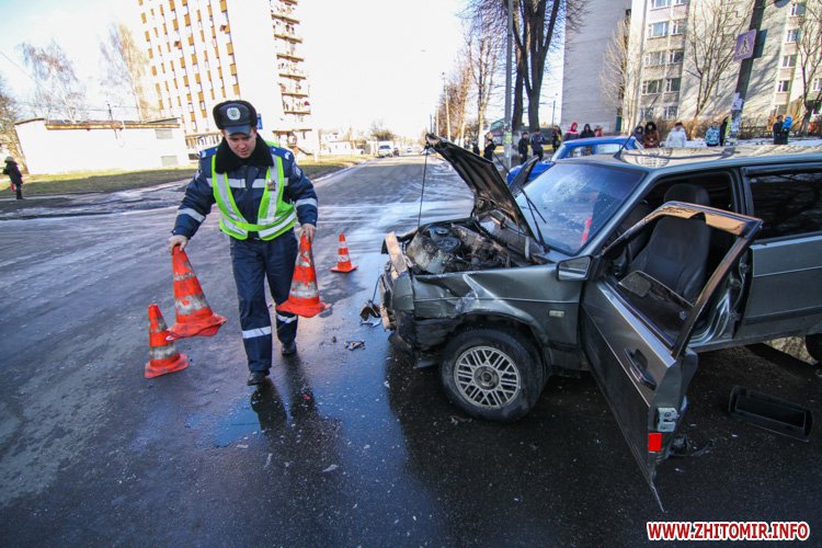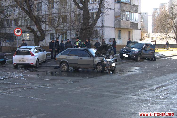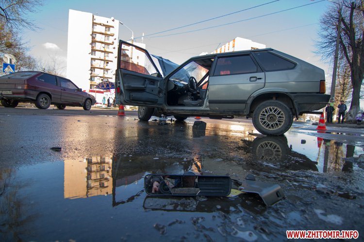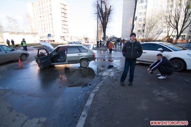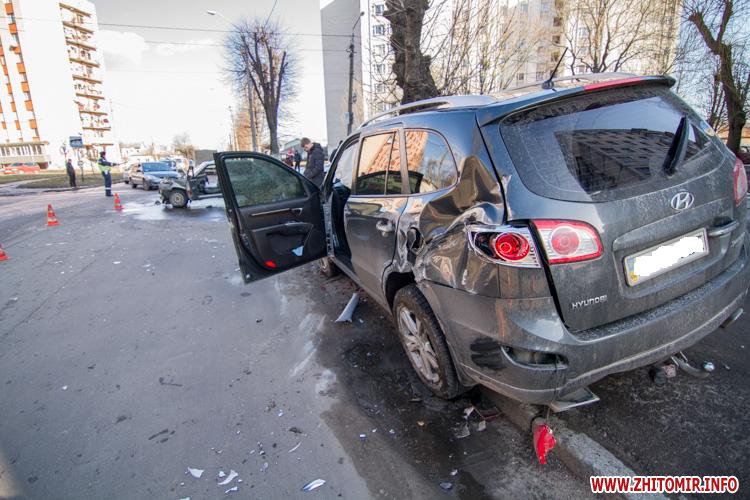В Житомире внедорожник Hyundai и ВАЗ-2109 не поделили перекресток улиц Шевченко и Шелушкова. Авария произошла около 13.40 18 февраля.