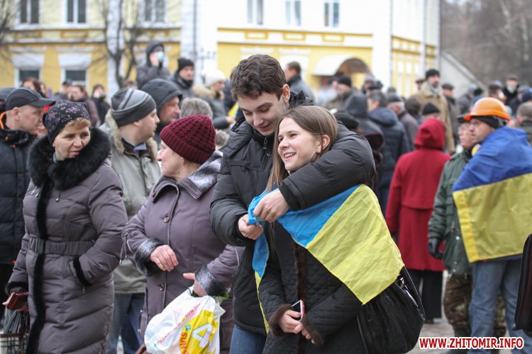 19 лютого о 12 годині на площі Корольова у Житомирі зібралося близько тисячі людей, які обурені ситуацією в Києві та Україні вцілому.