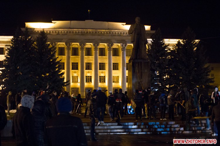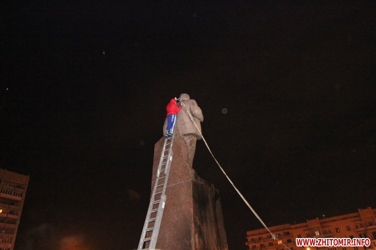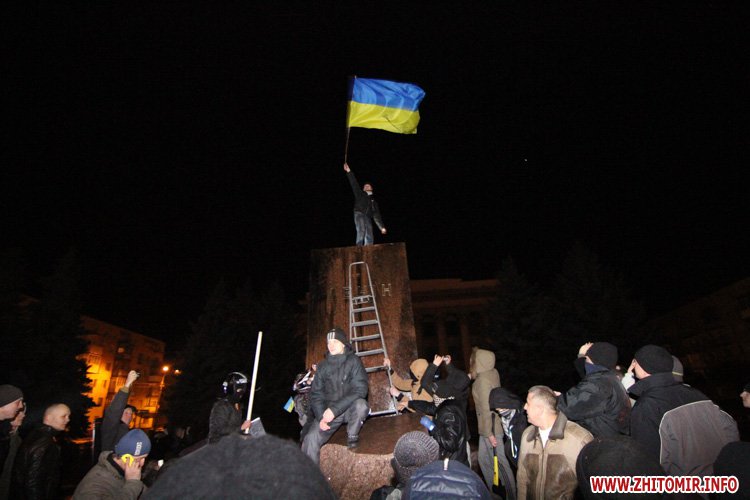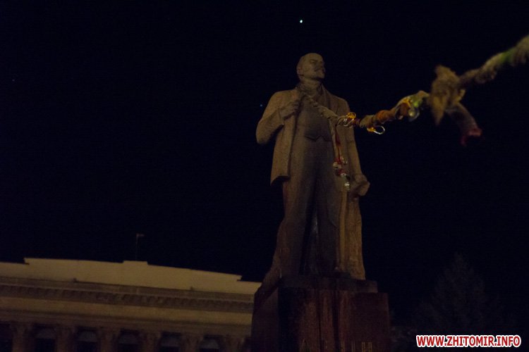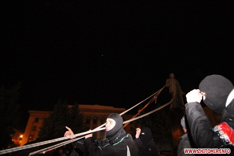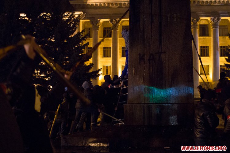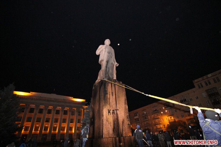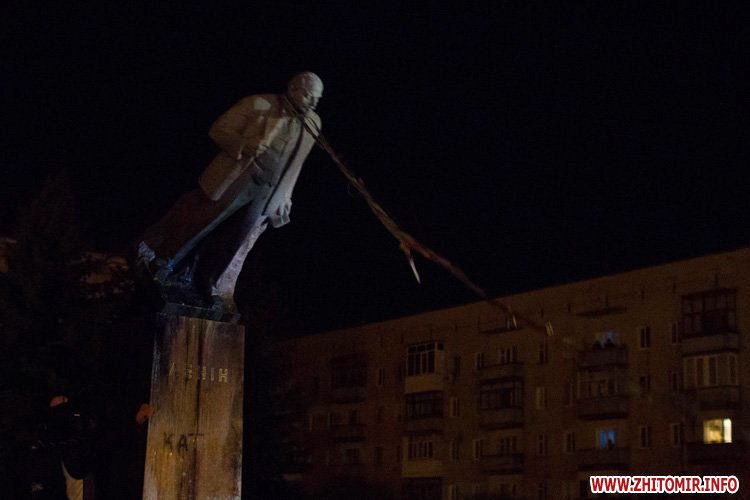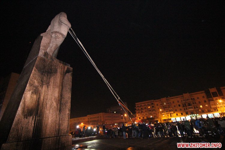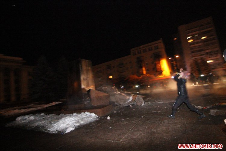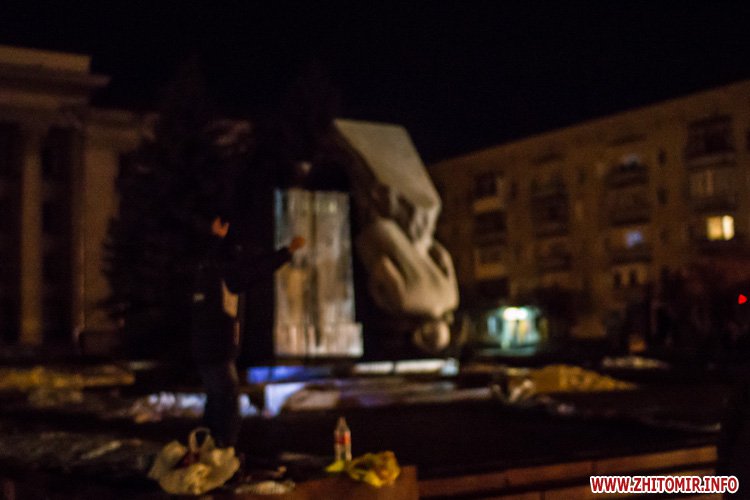 21 февраля около часа ночи в Житомире упал с постамента гранитный памятник Ленину на площади Соборной.