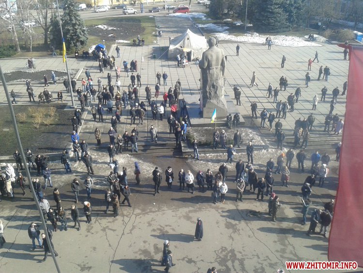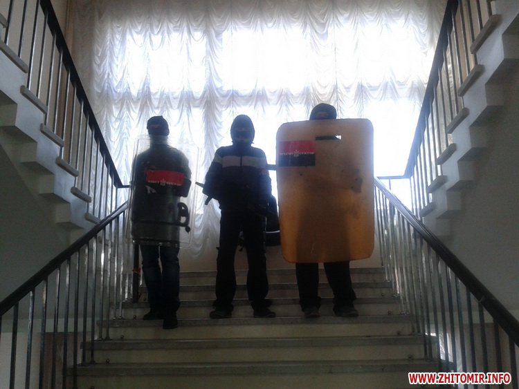 Активисты, 19 февраля захватившие здание облгосадминистрации, блокируют 4 этаж с сессионым залом до окончания сессии. На площади Королева находится несколько сотен житомирян.