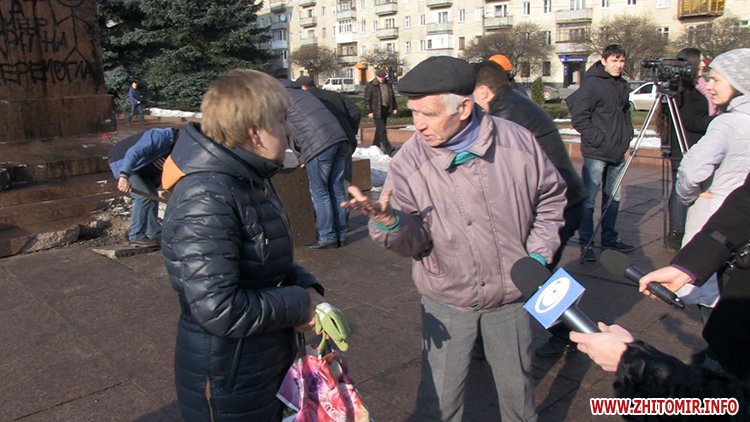 Не обходиться і без суперечок, які переростають у сварки. Одні переконані, що прибрати гранітного Леніна з центральної площі треба було вже давно, інші впевнені – без цього пам’ятника Житомир втратить свою самобутність.