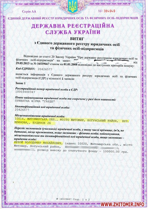 Напомним, что одним из основателей фирмы «Гарде» является нынешний мэр Житомира Владимир Дебой. За время его каденции некоторые объекты «Гарде» превратились из киосков во «временные павильоны общественного питания». Площадь временных объектов не должна превышать 30 кв.м., но фактически сруб на ул.Черняховского был намного больше.