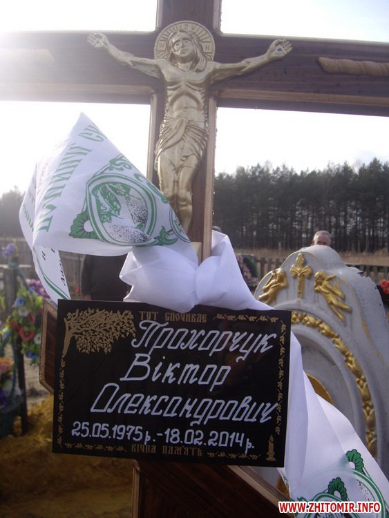 «У Володарську-Волинському Житомирської області в останню путь за останні десятиліття так не проводжали нікого. Безліч люду, оберемки квітів. Віктор Прохорчук перебував на Майдані від самого початку. Лише раз навідався до рідних у грудні. Регулярно телефонував матері та дружині. Зник 18 лютого. Бійці з його сотні відшукали свого побратима через тиждень у морзі. Перед тим тіло загиблого виявили у дворах Хрещатика, куди було викинуте зі слідами насильницької смерті та з перерізаним горлом. Прощалися з Віктором у рідному містечку, вкривши його синьо-жовтим прапором та під вигуки «Герої не вмирають!», - розповів Сергій.