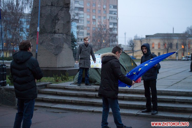 22 ноября в 15.00 активисты начали собираться на площади Королева, вечером возле памятника С.П.Королеву собралось около 70 человек, шел дождь. Это был первый Евромайдан в Житомире, с этого дня активисты начали собираться на площади каждый день в 18.00.