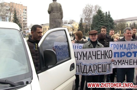 За інформацією активістів прокурором Житомирської області має стати Анатолій Чумаченко. Автомайданівці з цією кандидатурою категорично не згодні. Кажуть, вже пікетували прокуратуру, вимагаючи у Чумаченка звільнення, але після того їх почали переслідувати.