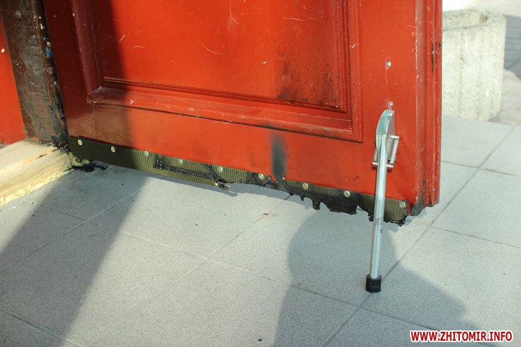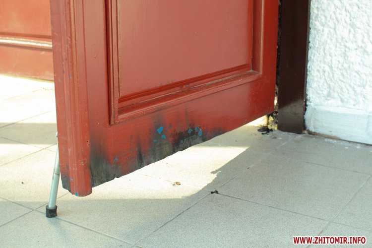 Ночью 21 марта неизвестные подожгли дверь кафе «Глобус», которое находится на улице Лятошинского в здании бывшего ресторана «Смоленск».