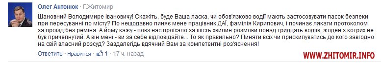 Т.в.о. начальника УДАІ в Житомирській області Володимир Гриб поспілкувався з нашим журналістом та відповів на запитання читачів Житомир.info.