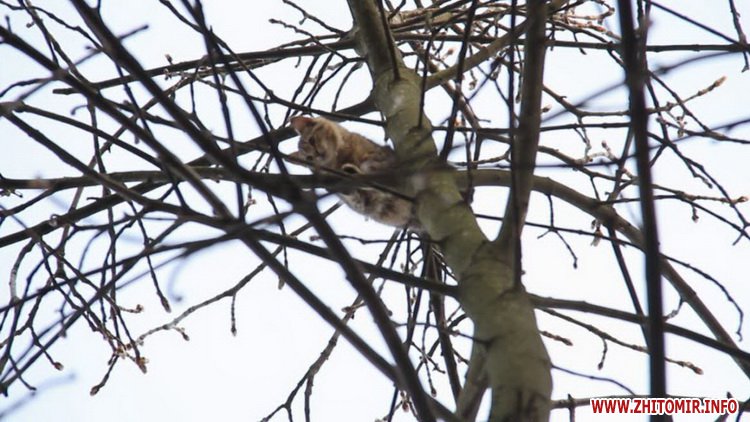 Ввечері 31 березня до прохання мешканців таки дослухались рятувальники. Вони приїхали і струсили кота з гілки. Кіт приземлився на простирадло, яке внизу натягнули люди, і одразу ж втік.