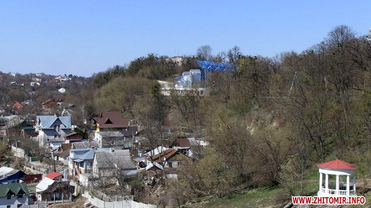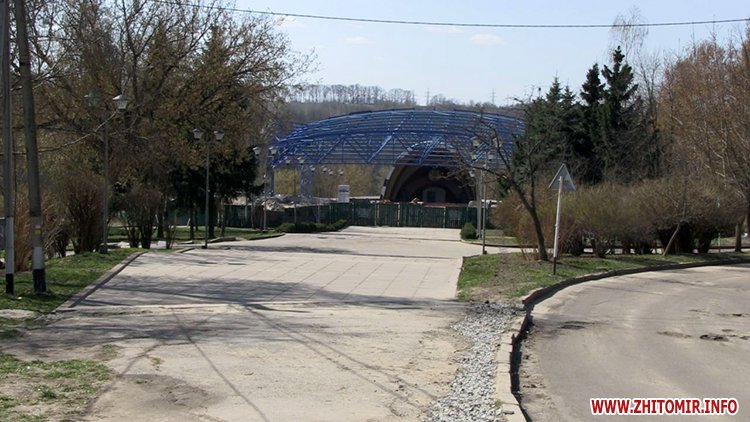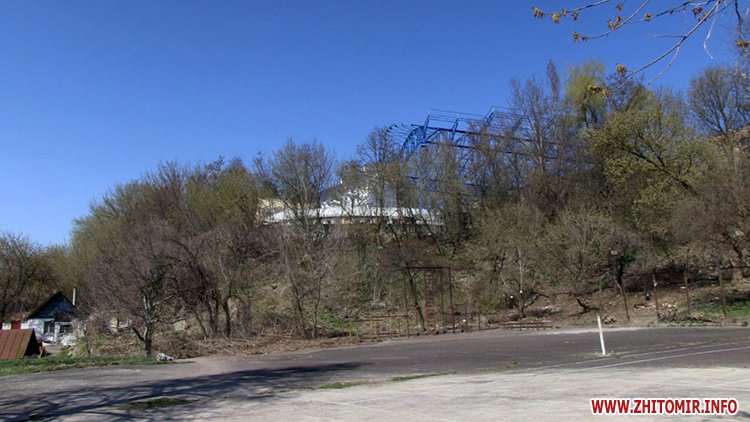 Її ремонтують, а вона падає у прірву. Літня естрада «Ракушка» у Житомирі стрімкими темпами сповзає з пагорба. Лише за останню зиму один її край зсунувся на 40 сантиметрів, інший – на цілий метр, кажуть міській раді.