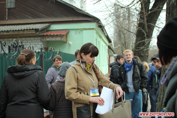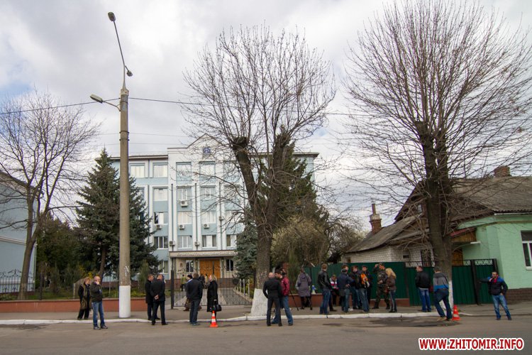 Близько півсотні житомирян зійшлися 7 квітня до обласної прокуратури – чекали на приїзд нового прокурора. Люди хотіли привітати його з призначенням та виказати своє незадоволення діями колишнього керівництва прокуратури: