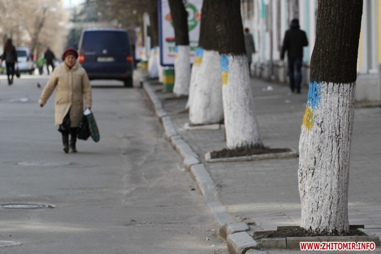 Фотокореспондент Житомир.info нарахував на центральних вулицях міста близько десятка будинків з прапорами.