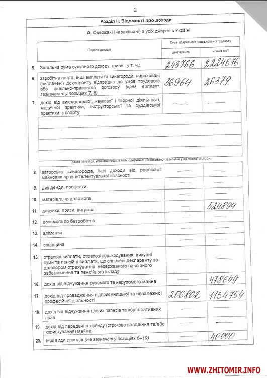 Заработная плата секретаря горсовета в прошлом году составила 36 тыс. 964 грн., доход от предпринимательской и независимой профессиональной деятельности – 206 тыс. 802 грн.