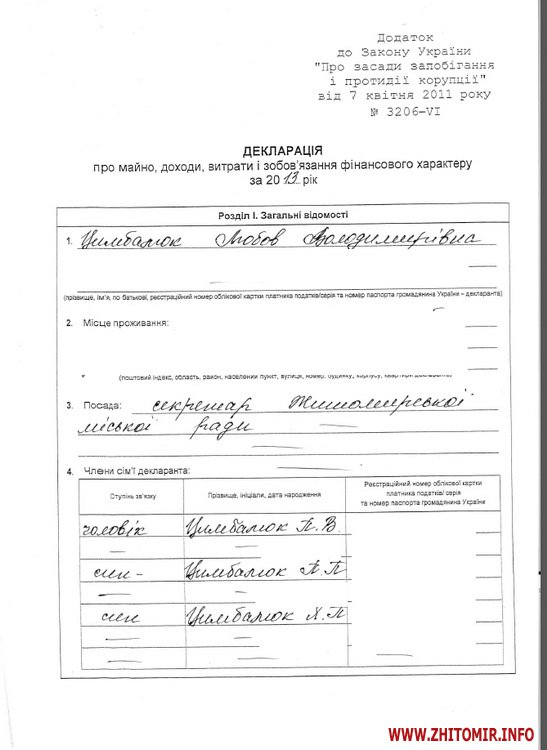 Секретарь Житомирского горсовета Любовь Цимбалюк задекларировала 243 тысячи 766 гривен доходов в 2013 году.