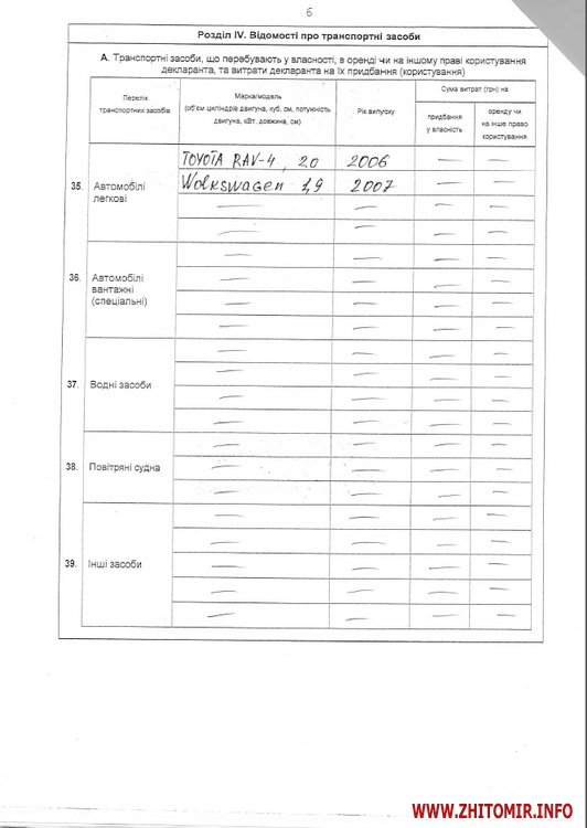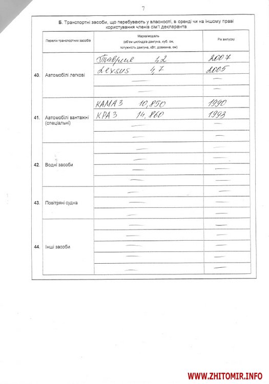 В гараже секретаря горсовета – два автомобиля: Toyota RAV4 2006 года выпуска и Volkswagen 2007 г.в. В собственности у членов семьи Цимбалюк четыре автомобиля: легковые «Таврия» 2007 г.в. и Lexus 2005 г.в.; грузовые КамАЗ 1990 г.в. и КрАЗ 1993 г.в.