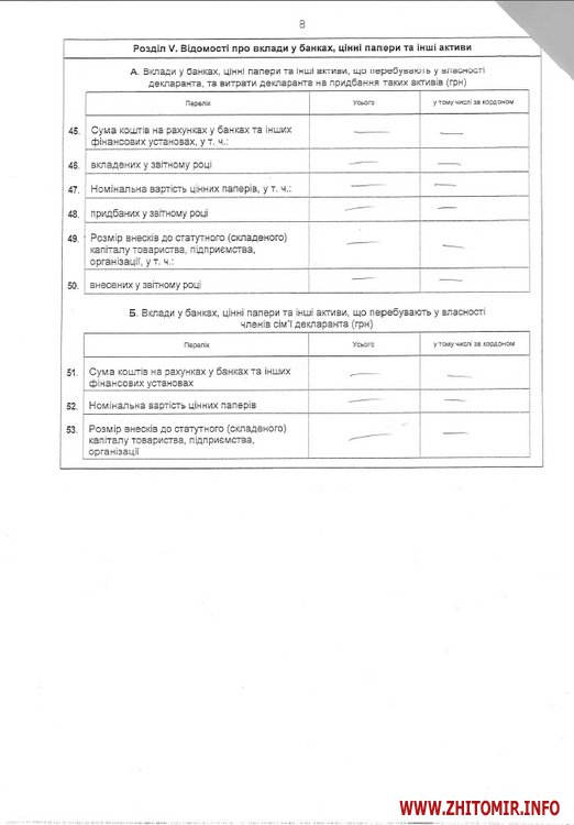 На счетах в банках и других финансовых учреждениях у секретаря горсовета и членов семьи денег нет.