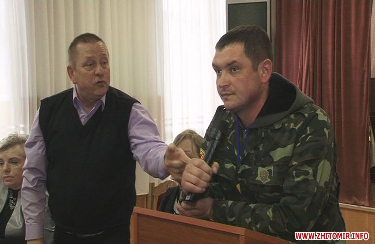 На розмову до директора бердичівські самообронівці приходять вже вдруге. Кажуть, місцеві мешканці звинувачують його у здирництві та навіть у сексуальних домаганнях, тож вимагають, аби керівник навчального закладу написав заяву про звільнення.