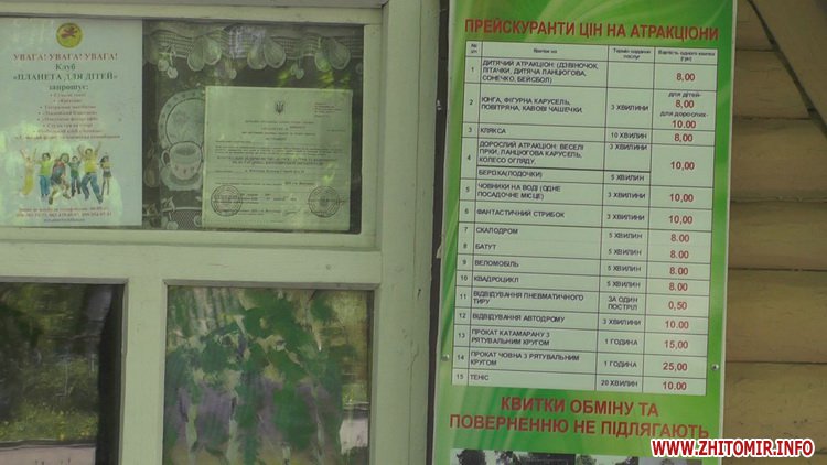 В житомирском парке культуры и отдыха им. Гагарина открылся новый сезон. Уже начали работу все аттракционы, кроме аварийного «Сюрприза», который собираются демонтировать, а на его место установить новый аттракцион «Говерла». Билеты с прошлого года не подорожали: стоимость детских аттракционов - 8 гривен, взрослых – 10 гривен.