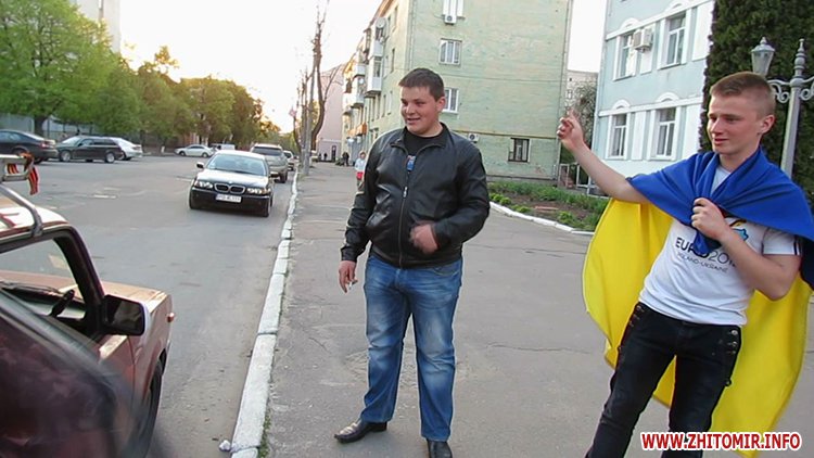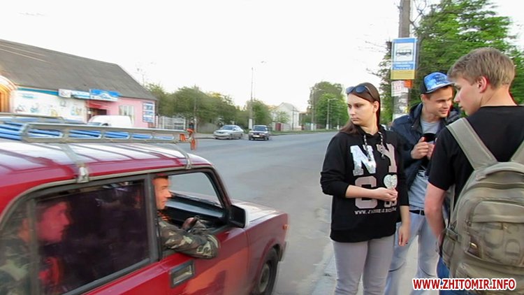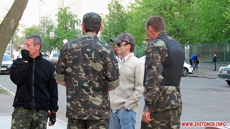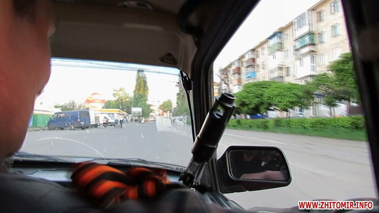 Попри активні заклики в ЗМІ повідомляти про підозрілих людей у правоохоронні органи, перевдягнуті у сепаратистів активісти в’їхали у місто з боку Крошні, безперешкодно проїхали пів Житомира і дістатися обласного управління МВС. Прямо під вікнами міліції хлопці, обвішані георгіївськими стрічками і з муляжем автомата, влаштували 10-ти хвилинний перекур, але до них ніхто не вийшов, щоб перевірити документи.