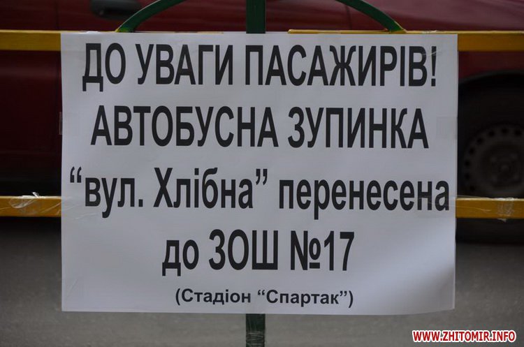 5 травня зупинку міського транспорту «вул. Київська/Хлібна» (у напрямку центру Житомира) перенесено навпроти центрального входу ЗОШ №17.