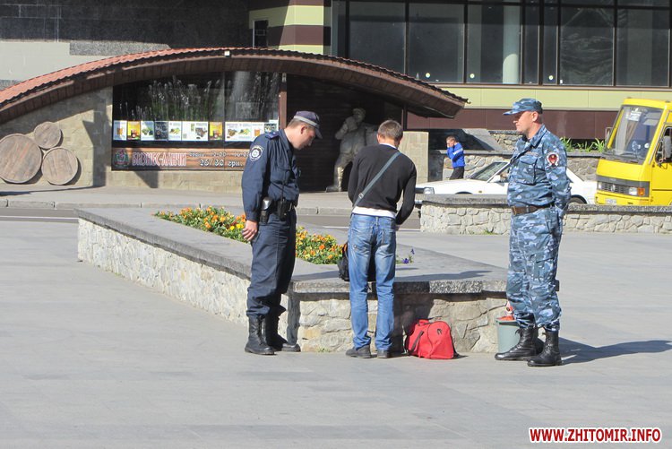 На подходе к площади Победы милиция просит какого-то парня показать собержимое рюкзака