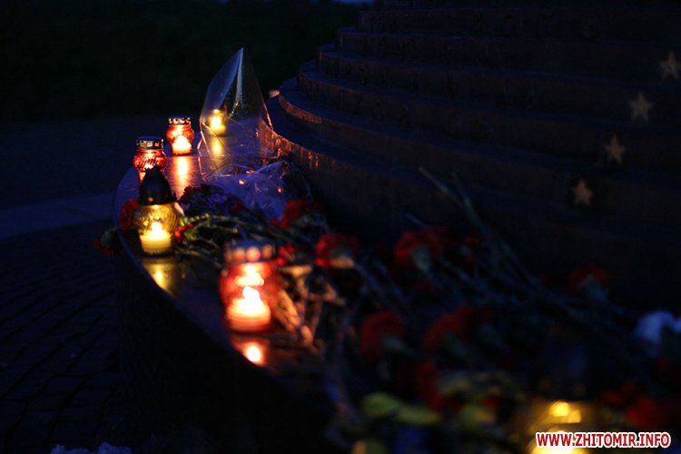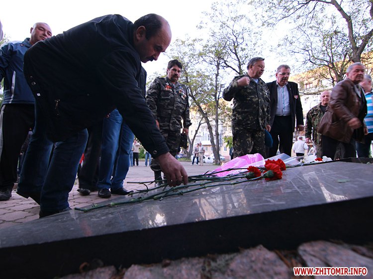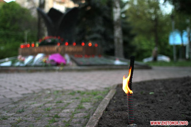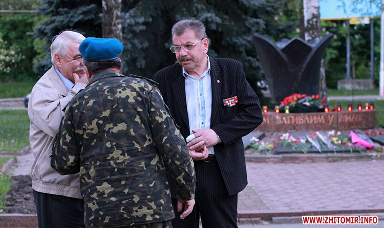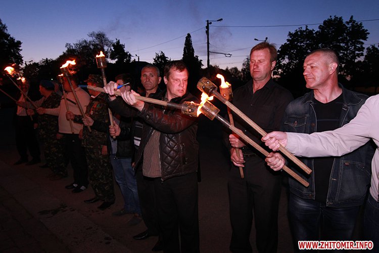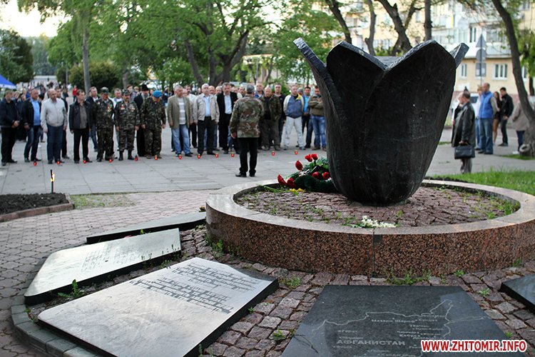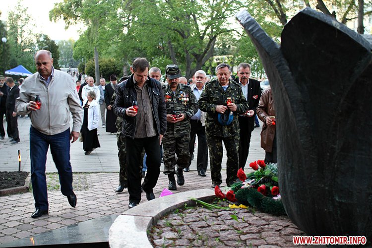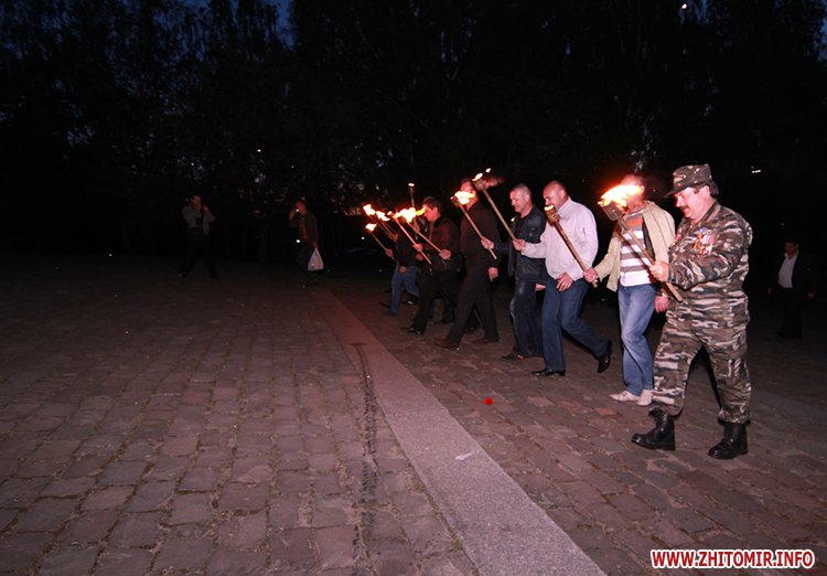 Ввечері 8 травня житомирські афганці зібралися біля Монумента Слави й запалили факели.