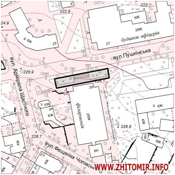 - вул. Пушкінська, 26 - поряд з будівлею Житомирської обласної філармонії