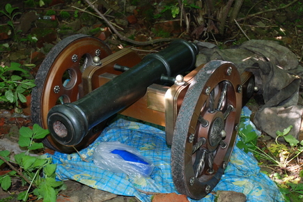 В Емильчинском районе Житомирской области на территории сельской общеобразовательной школы директор обнаружил скрытую в кустах и прикрытую тряпьем ядровую пушку, которая, судя по гравировке, принадлежала бывшему министру обороны Украины.
