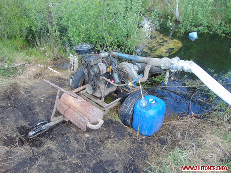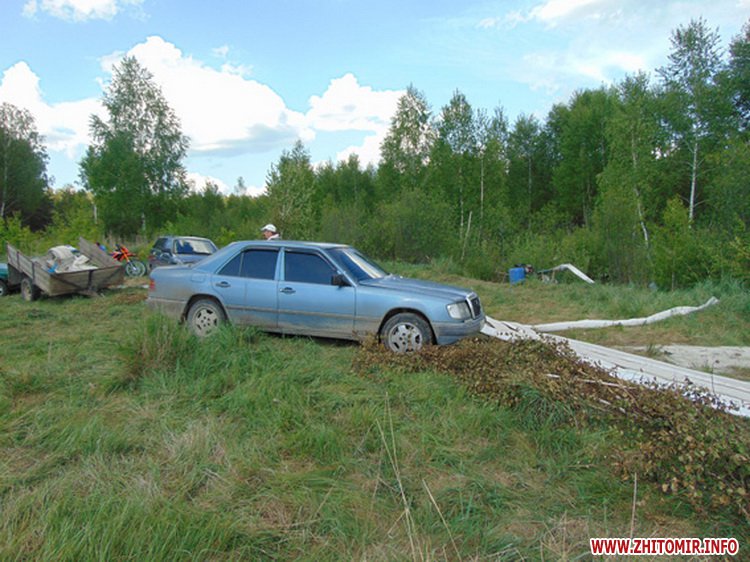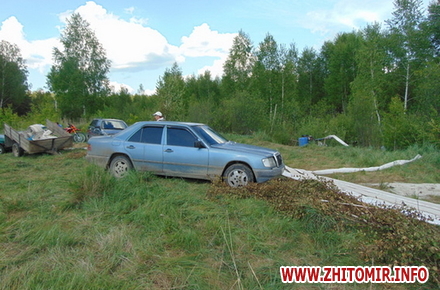 По словам начальник Коростенского горотдела милиции Виктора Калитки, на месте происшествия были обнаружены два легковых автомобиля и мопед, которым, очевидно, мужчины и прибыли в Житомирскую область, а также помпу для размывания почвы и другое специальное оборудование, предназначенное для добычи драгоценных камней.