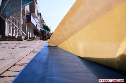 В Житомирі збираються встановити рекорд України, вивісивши найбільший національний прапор на фасаді будинку, що на майдані Соборному.