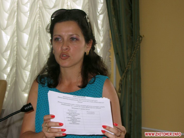 «Спортивна громада області на сьогодні рекомендує трьох людей на цю посаду (прізвища яких значилися у бюлетенях для таємного голосування - Житомир.info), крім Світлани Гресь. Світлана Гресь минулого разу прийшла (на робоче засідання ради) сама і повідомила, що висуває свою кандидатуру. На сьогоднішній день є інформація, що Гресь Світлану Миколаївну вже хочуть поставити директором департаменту. (Ще раніше) у день, коли була створена робоча група, принесли розпорядження від вищого керівництва (області), в якому було зазначено, що на стажування на посаду заступника по спорту призначено пані Сліпченко. Це було вирішено без думки спільноти, молоді, спортсменів. Хто ця людина, не знаю, особисто не знайома, характеристику зі слів інших людей передавати не буду і не маю права. Ми проти цього, і тому будемо вносити свої пропозиції, намагатися донести свою думку, щоб її почули», - висловилася секретар Координаційної ради, представник ГО «Час змін», доцент ЖДТУ Ірина Коцюба.