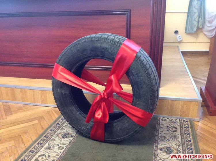 «У нас є інформація, що, попри те, що ми усі підтримали і рекомендували на посаду директора департаменту Леоніда Українця, на цю посаду губернатор вже призначив поетесу і члена «Батьківщини» Світлану Гресь. Ми ж принесли цю покришку, щоб нагадати про те, що влада обіцяла до нас прислухатися, погоджувати кандидатів, а не просто призначати кого заманеться», - заявив голова АГО «Нова сила» Костянтин Суський.