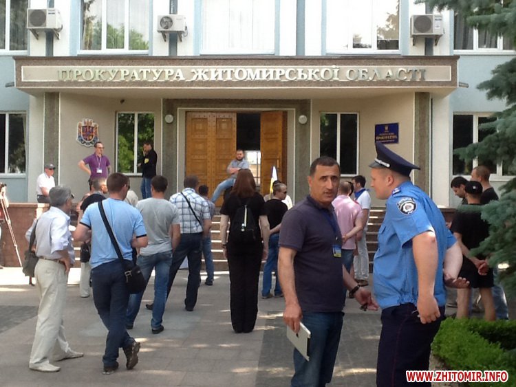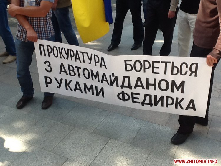 У Житомирі 26 травня близько 50 активістів Автомайдану принесли до приміщення обласної прокуратури дві шини. Так люди протестують проти того, що прокуратура береться за справи вибірково.