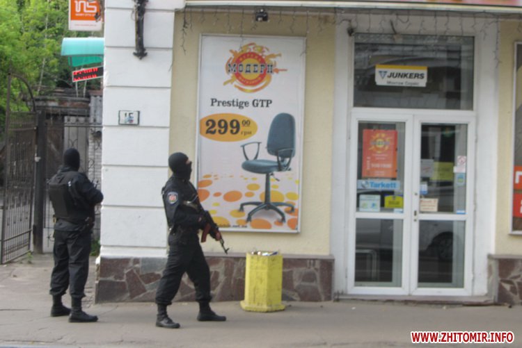 Как сообщал Житомир.info, около 19.00 27 мая поступила информация о том, что в здании БТИ, которое находится возле мэрии, - вооруженные люди. Милиция оцепила здание и перекрыла движение. Говорят, что в Житомир из Киева приехали вооруженные члены Правого сектора, чтобы сменить руководство местной организации. Губернатор и начальник УМВД вели с людьми в здании БТИ переговоры. В 22.10 от здания отъехал автозак. Оцепление сняли около 23.00