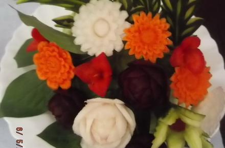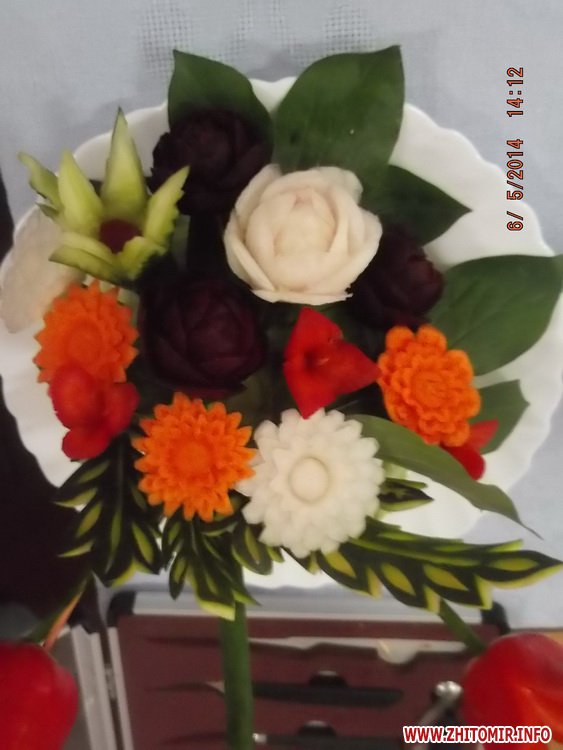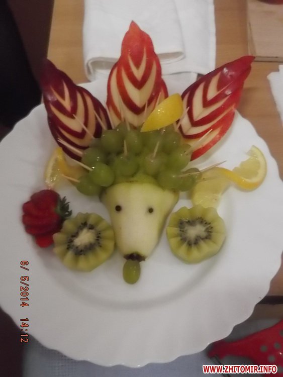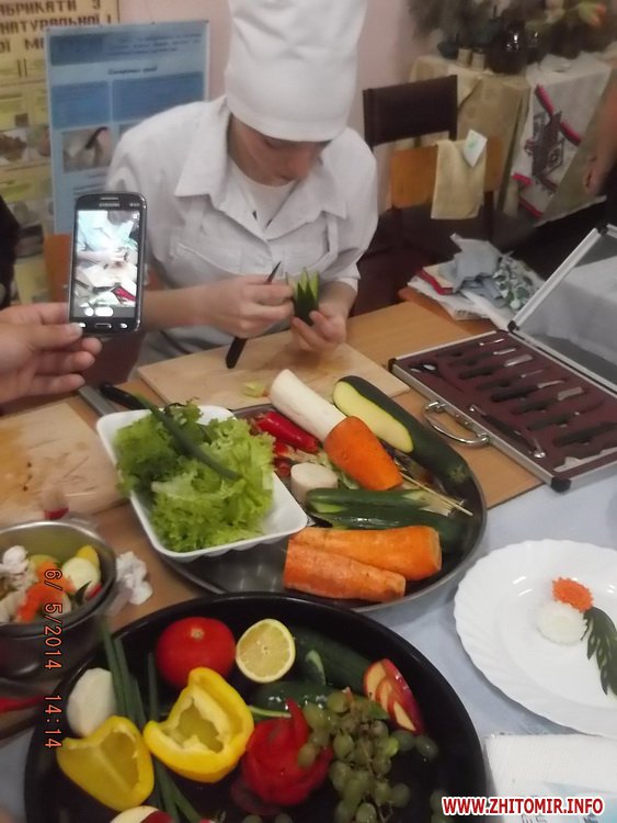 Учні училища-інтернату отримали унікальну змогу повчитися правильному сервіруванню святкового столу, а також мистецтву прикрашання страв за допомогою художньо вирізаних овочів та фруктів у викладачів Житомирського торгівельно-економічного коледжу.