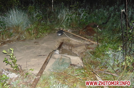 «Сообщение о том, что на территории района неизвестные лица проводят земляные работы, поступило в милицию ночью. По указанному адресу срочно выехала следственно-оперативная группа. Совместные мероприятия, проведенные сотрудниками милиции и СБУ, позволили задержать на месте происшествия 33-летнего жителя Коростенского района. Он подтвердил, что с помощью специального оборудования размывал грунт, чтобы добраться до янтарных залежей. Также мужчина рассказал, что нанялся на эту работу, приняв предложение незнакомцев немного подзаработать. О том, что деятельность незаконна, знал, потому и проводил добычу ночью», - информируют в областном управлении МВД.