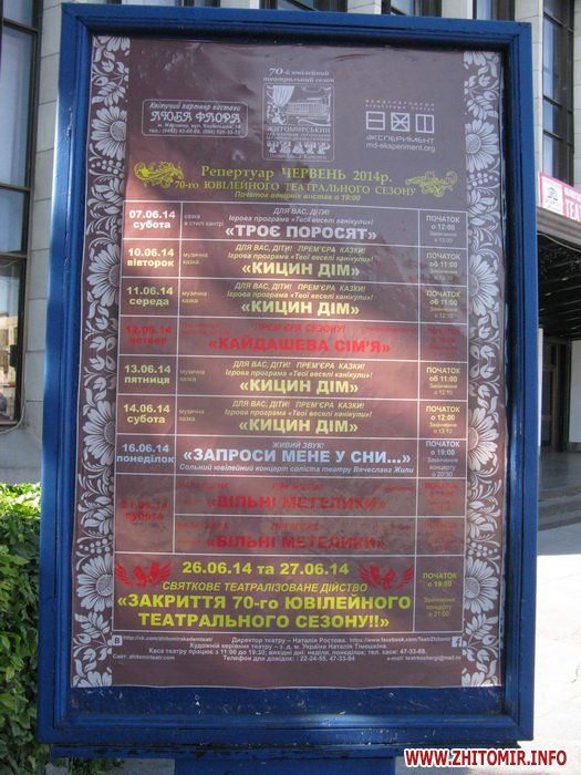 Как сообщал Житомир.info, в Житомирском драмтеатре состоится двухдневное театрализованное представление, посвященное закрытию 70-го юбилейного театрального сезона.
