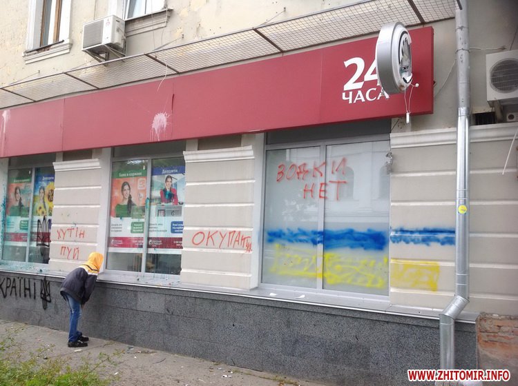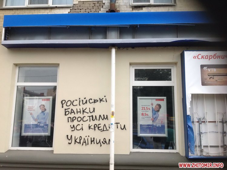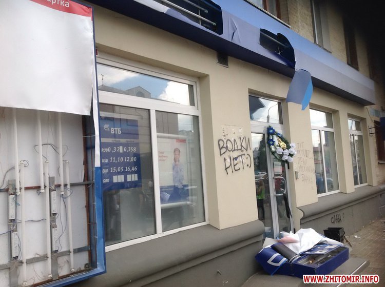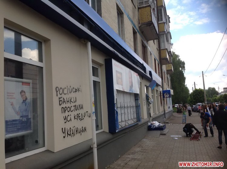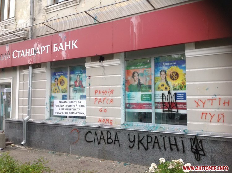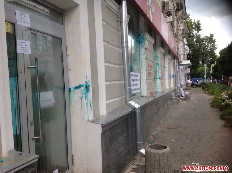 Как сообщал Житомир.info, 15 июня отделение банка «Русский Стандарт» в центре Житомира забросали яйцами, облили веществами, похожими на зеленку и фукорцин.