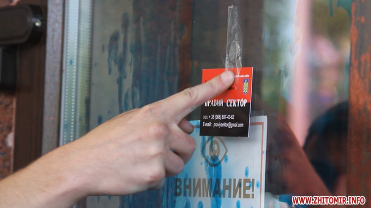 С представителями житомирского Правового сектора, которые разбивали вывески и закидывали яйцами и зеленкой отделения российских банков, будут разбираться.