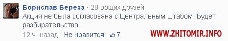«Акция не была согласована с Центральным штабом. Будет разбирательство», - написал Береза в комментарии на фейсбук.