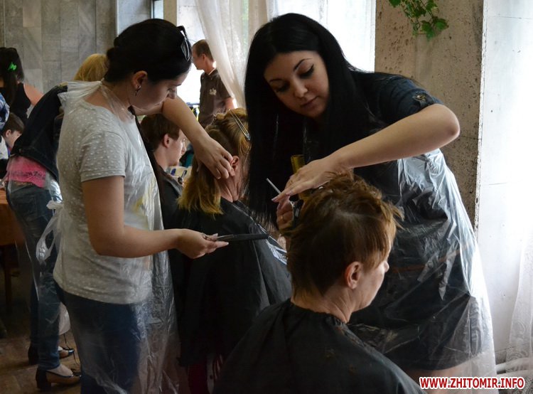 Організатори підійшли до благодійної акції креативно: привезли з собою вісім перукарів, які хлопчикам і жінкам робили модні зачіски та стрижки, а дівчаткам заплітали кіски і прикрашали волосся віночками.