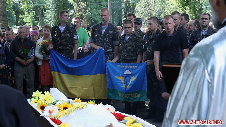 Житомирська область 23 червня прощається із двома десантниками, які загинули 19 червня в бою під Красним Лиманом на Донеччині під час обстрілу бойовиків.
