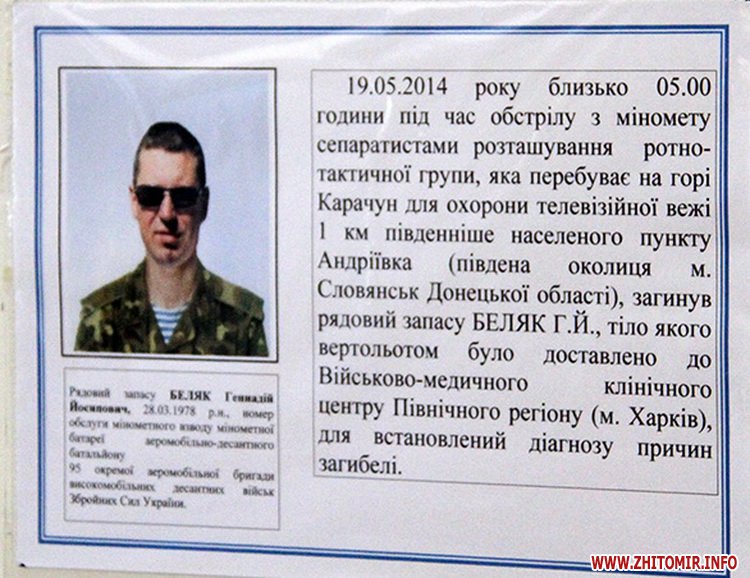 З початку збройного протистояння на сході України вже загинули 20 військовослужбовці житомирської 95-ї окремої аеромобільної бригади Сухопутних військ Збройних Сил України: