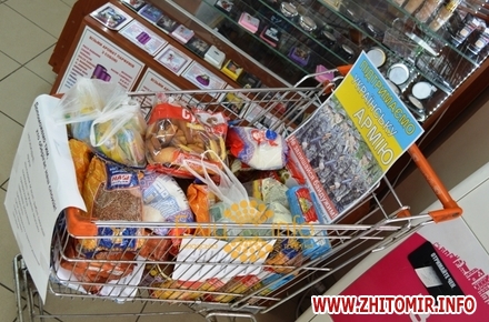 «Настав непростий час, коли кожен може і повинен стати захисником Вітчизни. Бронежилети та зброю для солдатів мають закуповувати професіонали, тому ми просимо житомирян поділитись із військовими засобами першої необхідності. З наведеного списку, який ми отримали від особового складу військової частини А0281, кожен бажаючий зможе обрати, чим допомогти нашим військовим. Для цього біля торгівельних кас супермаркету на Київській,77 будуть розташовані візки, до яких можна буде покласти придбані речі. Усе зібране передамо житомирським військовим, які нині захищають нашу державу на Сході країни. Ми не закликаємо здавати гроші. Проводиться збір саме речей. Гарантуємо прозорість акції, щоденний облік та контроль зібраних речей, фотозвіт. Акція триватиме з 3 по 6 липня включно. Сподіваємося на Ваше розуміння та підтримку», - повідомляють організатори акції.