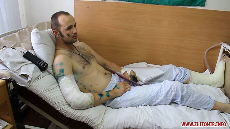 На данный момент мне сделали операцию на ноге, была осколочно-рваная рана. На ноге всё зашили, подшили. Я доволен результатом, мне сказали, реабилитация будет дольше, но я чувствую себя намного лучше, думаю, что поднимусь намного быстрее. С локтем завтра будет операция, будет пересадка кожи. Думаю, что разработаю в скором времени руку, пальцы шевелятся, чувствительность налажена. Всё будет отлично.