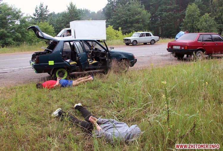 Злоумышленники запрыгнули в две легковушки и попытались скрыться, за ними в погоню бросились оперативники уголовного розыска и сотрудники ГАИ. На автодороге, ведущей из Володарска-Волынского, задержали один из автомобилей с беглецами, за рулем которого была девушка. Вторую легковушку правоохранителям удалось блокировать на автодороге Житомир-Коростень.